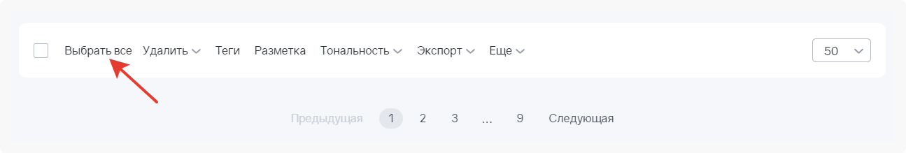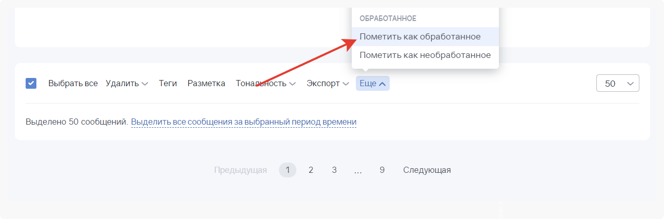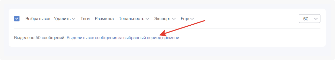 Такой же способ можно использовать для тегирования, проставления меток и тональности, удаления большого количества сообщений.
