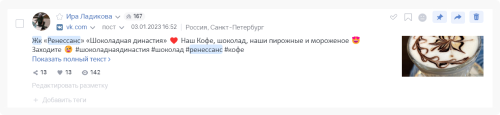 Рассмотрим на примере. Допустим, у нас есть ЖК «Ренессанс» и мы обратили внимание, что не все тематические телеграмм каналы используют полный запрос. Некоторые могут просто упоминать слово «Ренессанс». Но отслеживать-то нужно! Решение есть.