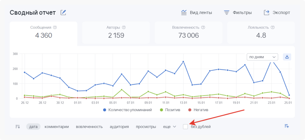 Если теги настроены правильно, упоминания можно обрабатывать кластерно (по каждому ЖК отдельно). А при подготовке анализа упоминаний за отчетный период, система сама соберет все данные по каждому объекту мониторинга.