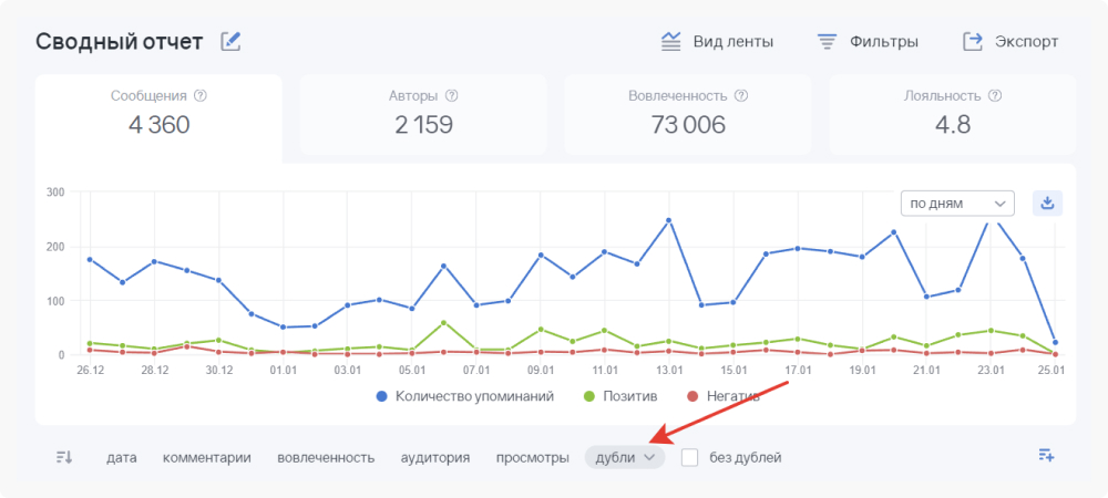 Там же можно сортировать все сообщения по признаку дублирования.