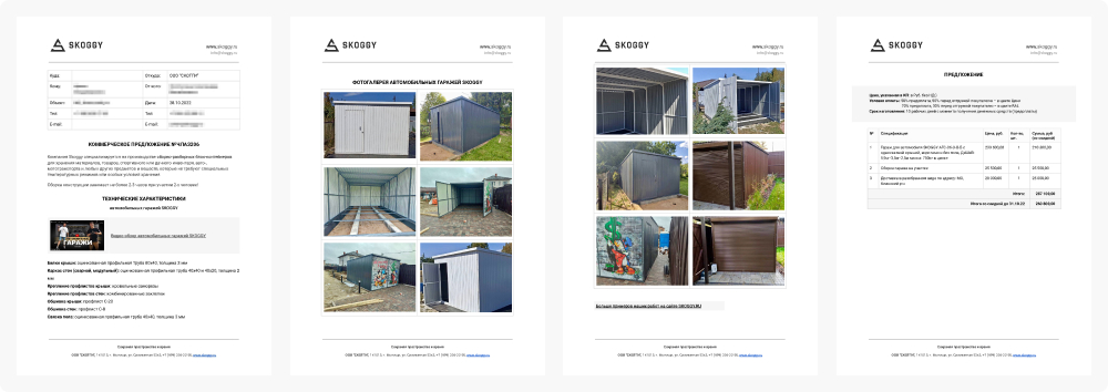 Мы, как digital-агентство Зекслер, привлекаем клиентов для производителя хозблоков и гаражей SKOGGY. Приводим ~600 лидов в месяц. На старте сделали аккуратный шаблон КП в Word, который менеджеры заполняли вручную. При ~10 обращений в день, менеджеры стали жаловаться, что уходит много времени на перенос товарных позиций в документ Word и суммарный расчёт конечной цены (особенно со скидкой) на калькуляторе. Не говоря уже об ошибках.