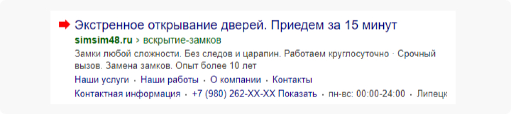 Вернемся к нашему мастеру Павлу. Изначально основной поток заявок идет и шел через простые объявления, которые с некоторой периодичностью расклеиваются по всему городу (столбы, подъезды, лифты, парковки) и принты, чтобы быть на виду (немножко вандальный способ, но что тут поделаешь). Но процесс поддержания видимости своей рекламы в формате оффлайн весьма проблематичен из-за высокой конкуренции (а сетевики не только скликивают рекламу в интернете (ой, спойлер), но ещё и закрашивают и срывают физические объявления), поэтому дополнительные показы и в онлайне были бы отличным вариантом для расширения своего присутствия. Так как первое, где будет искать человек, как открыть запертую дверь, это телефон.