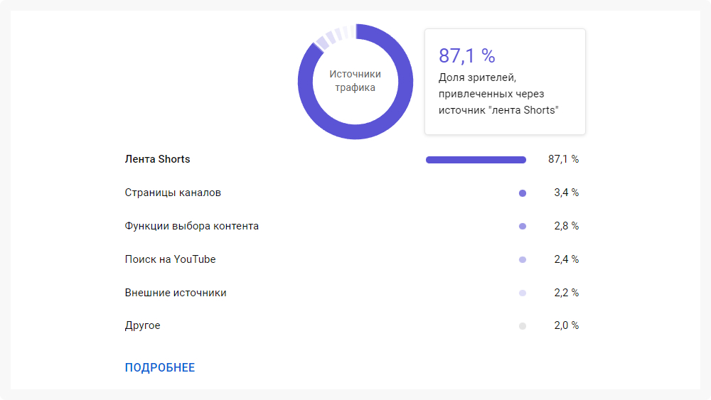 У наших производителей гаражей и хозблоков SKOGGY не такая популярная тематика, чтобы пользователи YouTube часто вводили по этой теме запросы, поэтому нам хорошо помогает рекомендательная система платформы. Около 90 % просмотров всех роликов получаем именно от рекомендаций. В данном случае – рекомендуемые видео в ленте Shorts. И вот мы плавно подобрались к самому топовому источнику просмотров и подписчиков.