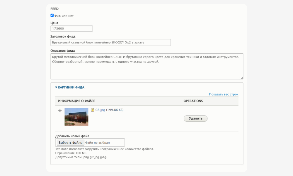 Обработанные фотографии также добавляются в админку кейса. Если изображения не добавлены, картинки в фид подтягиваются из тех, которые используются в самом кейсе.