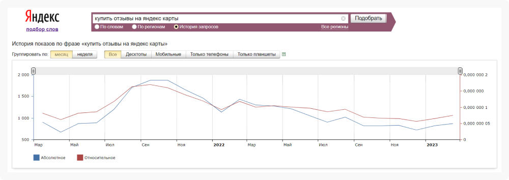 По статистике Wordstat спрос на отзывы на Яндекс.Картах за последний год упал в 2 раза. Нет, это не значит, что отзывы на Картах перестали покупать, просто большинство «желающих» нашли способ как накрутить рейтинг. Но все ли так хорошо с репутацией на Яндекс.Карты?