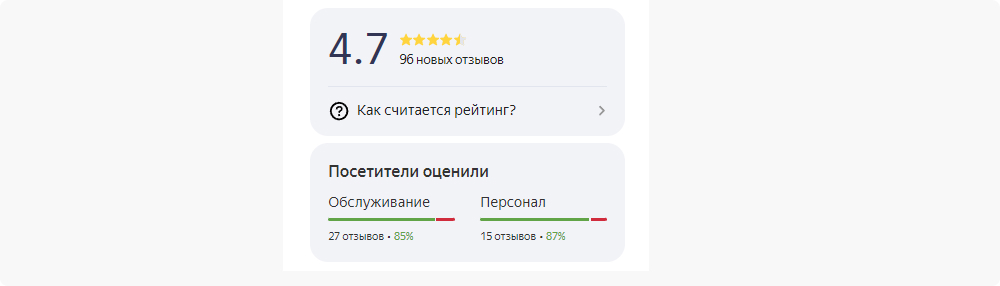 Самые клиентоориентированные компании наладили порядок генерации положительных отзывов от реальных клиентов, кто-то через бонусы, а кто-то исключительно за счет профессионализма сотрудников. Но доля таких компаний невелика. Большая часть компаний направляет часть рекламного бюджета на корректировку рейтинга в Яндекс.Карты. Другими словами, просто заказывает положительные отзывы у специально обученных людей.
