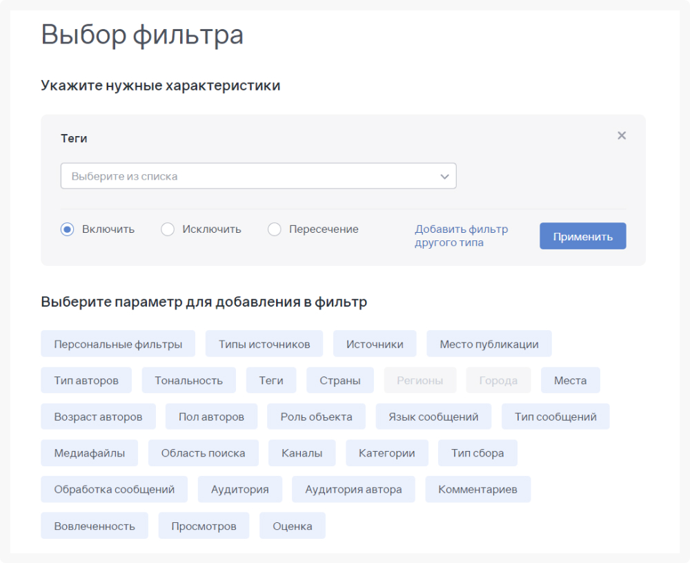 При настройке темы мониторинга используем теги. Они не только упрощают обработку упоминаний, но и помогают корректно собирать отчеты. Например, у нас есть застройщик, а у него 13 ЖК, упоминания по которым необходимо отслеживать. Под каждый ЖК нужно прописать теги во время первой отработки упоминаний.