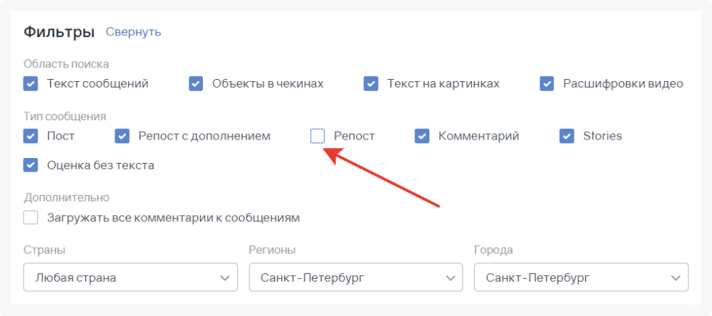 Как быстро обработать упоминания, которые тиражируют новостные площадки и социальные сети? Если это просто репост или перепечатка слово в слово, то их можно банально отсечь через настройку.Убираем репосты во вкладке «Редактирование темы» – снимаем галочку.