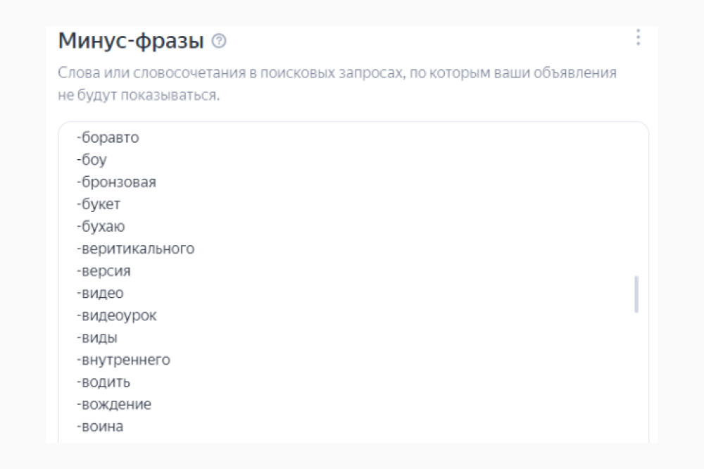 Также обязательно не забываем различные формы слов и синонимы, и на выходе у нас получается собранное ядро, причем очищенное от минус-слов.