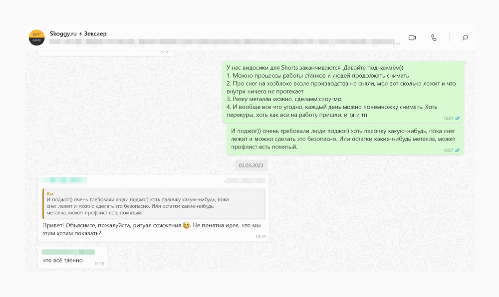 А ещё одна важная особенность продвижения любого бренда – это обратная связь от заказчика. Менеджеры и мастера SKOGGY – одни из тех клиентов, кто предоставляет материал часто, много и быстро отвечает на вопросы и просьбы, а это 90% успеха!