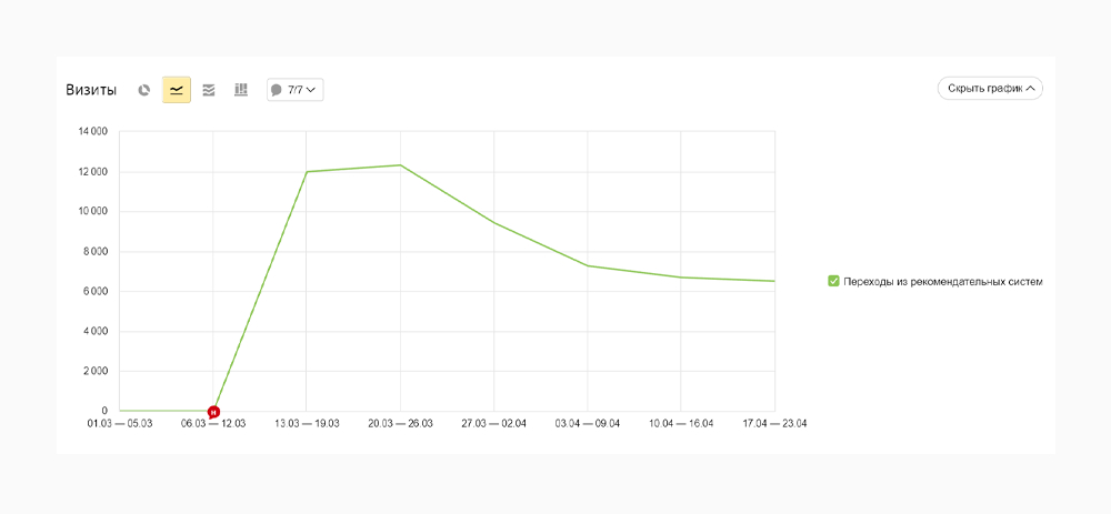 В опубликованной ранее статье по развитию Дзен-канала мы приводили в пример графики по 31 января текущего года.