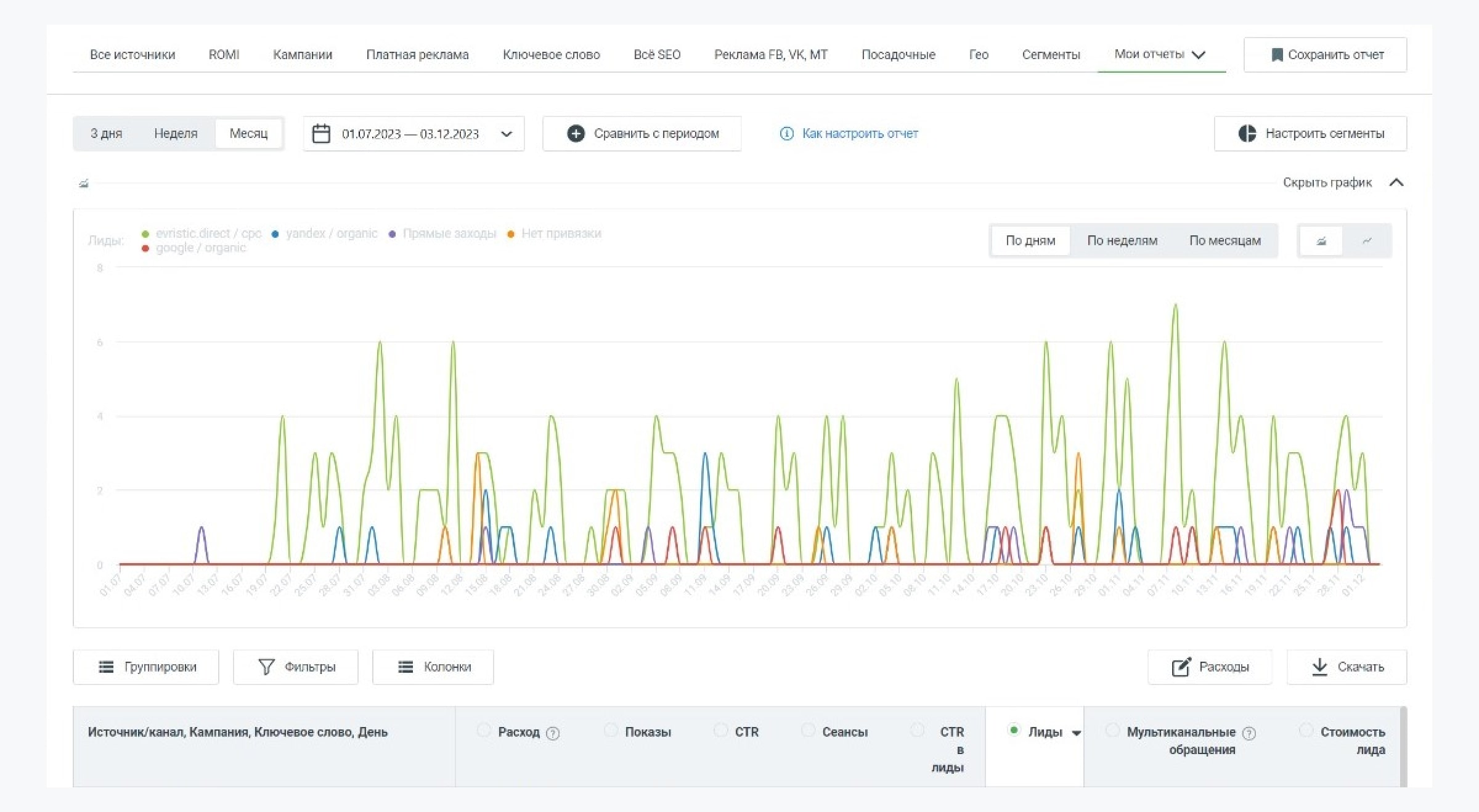 В первый месяц реклама принесла 34 качественные заявки и каждый месяц их количество увеличивается. Так, например в ноябре заявок было уже 161.