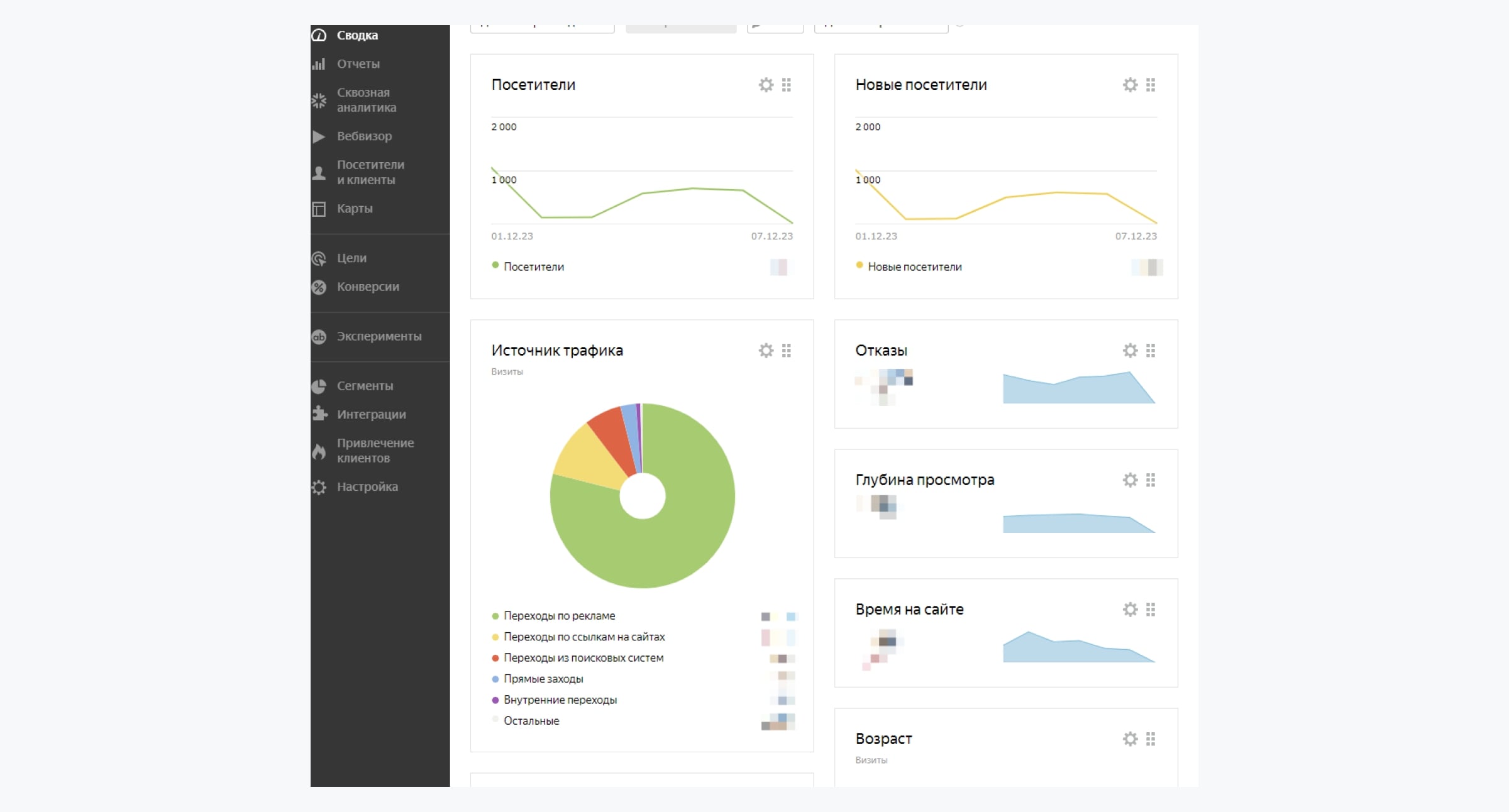 Ещё одним важным моментом является аналитика, через которую отслеживаются показатели рекламы и других источников трафика. Поэтому для этой цели была подключена Яндекс Метрика.