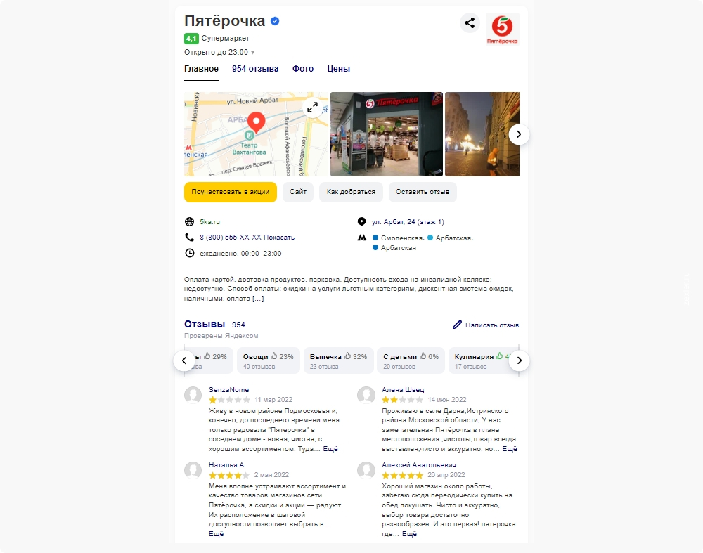 Сегодня с вами отдел управления репутацией и мы собрали интересный материал по рейтингу на площадке Яндекс.Карты и как он формируется в 2023 году. В статье есть гипотезы по работе алгоритмов вывода отзывов в ТОП и их результаты. Подписывайтесь на наш Телеграм-канал, где мы публикуем короткие посты о нашей работе, мини-инструкции и многое другое в сфере продвижения бизнеса в интернете. Читайте и пробуйте наши методы на своем сайте и каналах. А теперь, вернемся к теме площадки Яндекса.