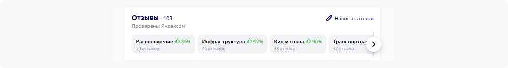 Еще один подарок от Яндекс.Карты – это тематические маркеры. В кабинете компании они выведены отдельным блоком «Посетители оценили».