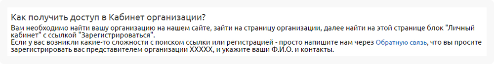 1. Необходимо получить доступ к кабинету организации.